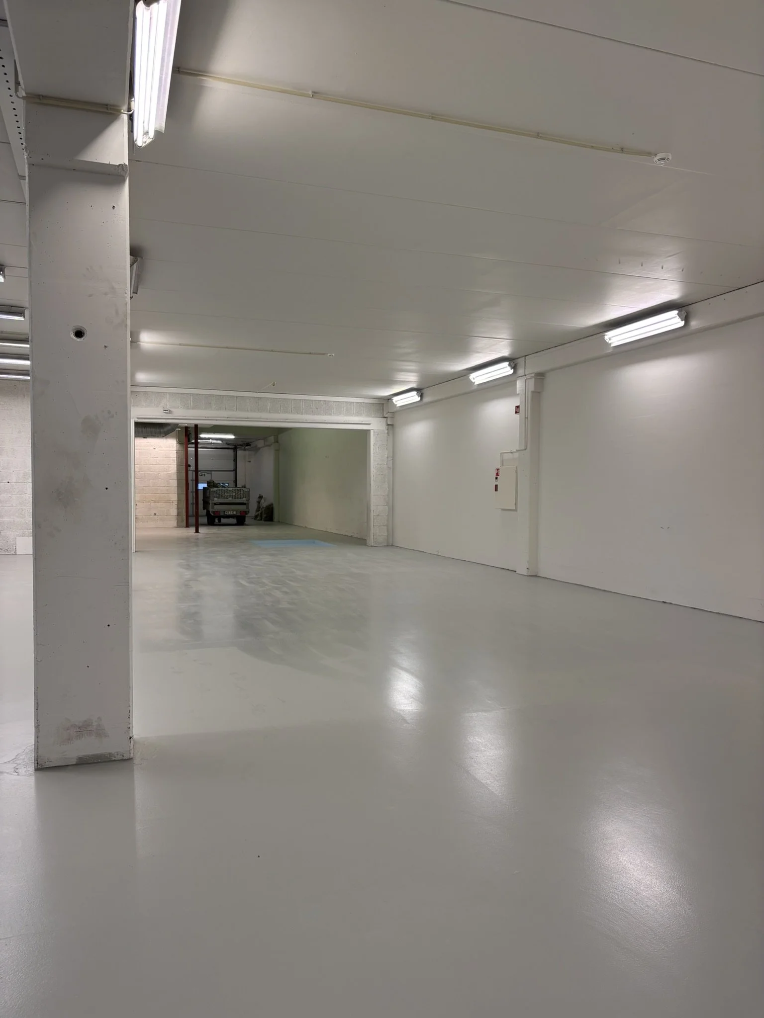 Et stort hvitt lokale skulle omgjøres daglig drift med varemottak, logistikk og tekstil trykk.